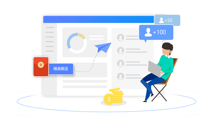 支持對海量的客戶以及客戶群,推送消息、甚至小程序、優(yōu)惠券等,并可追蹤效果。